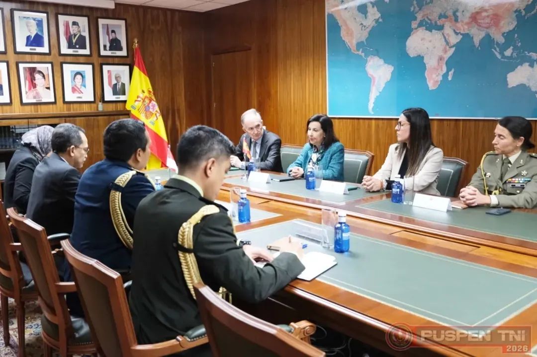 Madrid, Karosatuklik.com – Atase Pertahanan (Athan) RI Kolonel Pnb Agus Dwi Aryanto beserta Kepala Kanselerai Ria Uki Suharsi mendampingi Duta Besar RI di Madrid Dr. Muhammad Najib, menerima kunjungan Menteri Pertahanan (Menhan) Spanyol Margarita Robles Fernández dalam rangka meningkatkan hubungan diplomasi pertahanan antara Indonesia dan Spanyol, bertempat di Kantor Kedutaan Besar Republik Indonesia (KBRI) Madrid, Spanyol, Rabu (8/4/2026).