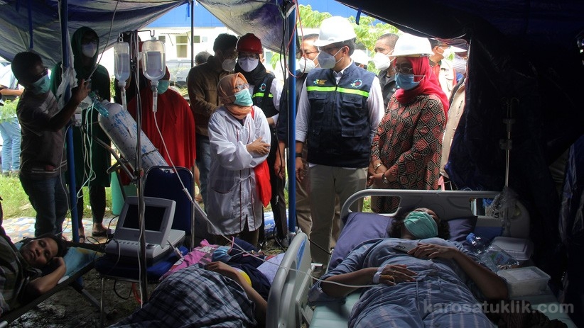Menteri Kesehatan RI Budi Gunadi Sadikin, Sabtu (16/1/2021) meninjau langsung ke tempat kejadian gempa di Sulawesi Barat, yakni RSUD Mamuju, Sulawesi Barat.