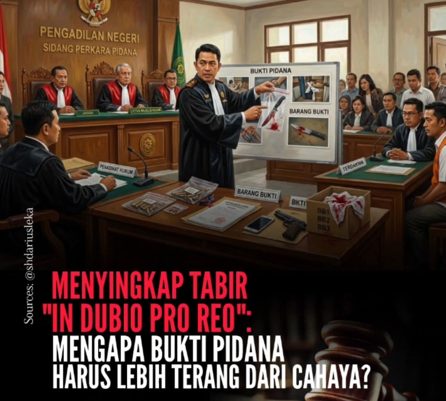 - Manfaat; Putusan yang didasarkan pada bukti “terang” akan memberikan edukasi dan efek jera yang tepat, bukan dendam sosial.
