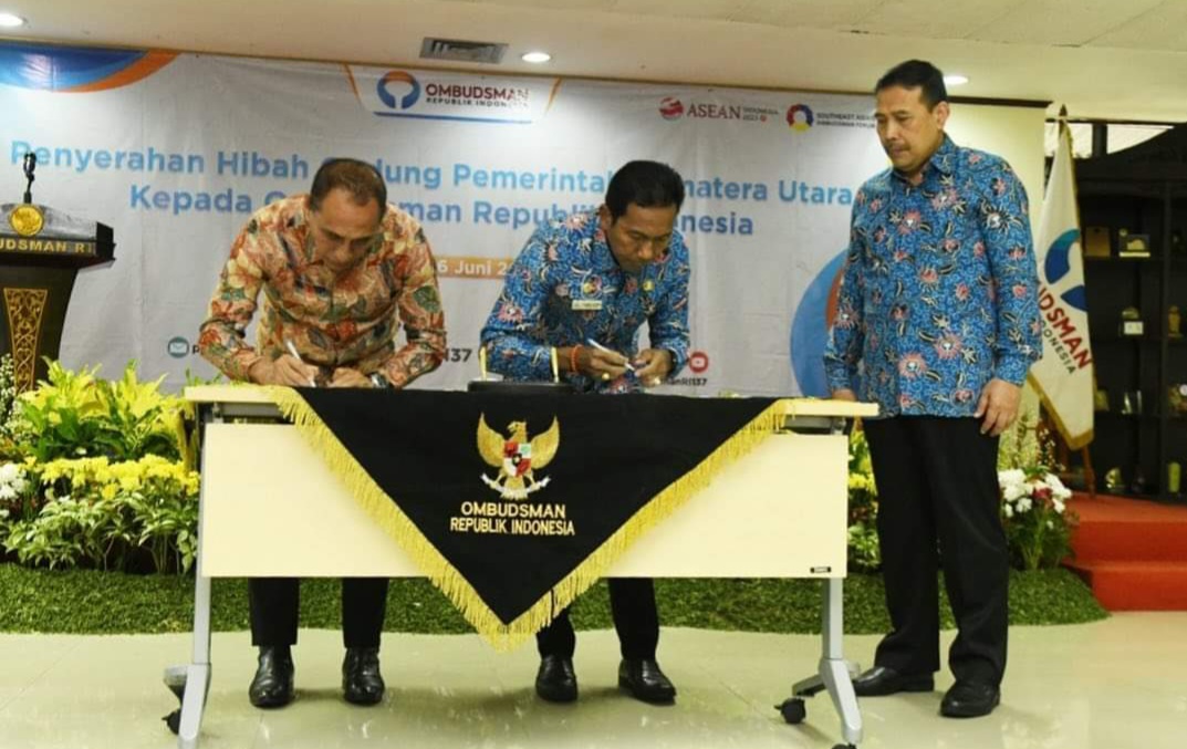 “Tahun 2021 Pemprov memperoleh nilai tingkat kepatuhan Ombudsman itu zona kuning, tetapi setelah didorong Pak Gubernur, Pemprov, Pemkab, Pemko tidak ada lagi yang zona kuning, semua hijau, itu beliau berhasil,” kata Mokhammad Najih, saat penyerahan SK hibah gedung Pemprov Sumut kepada Ombudsman Perwakilan Sumut di Kantornya, Jalan HR Rasuna Said, Kav C-19, Jakarta Selatan, Selasa (6/6/2023).