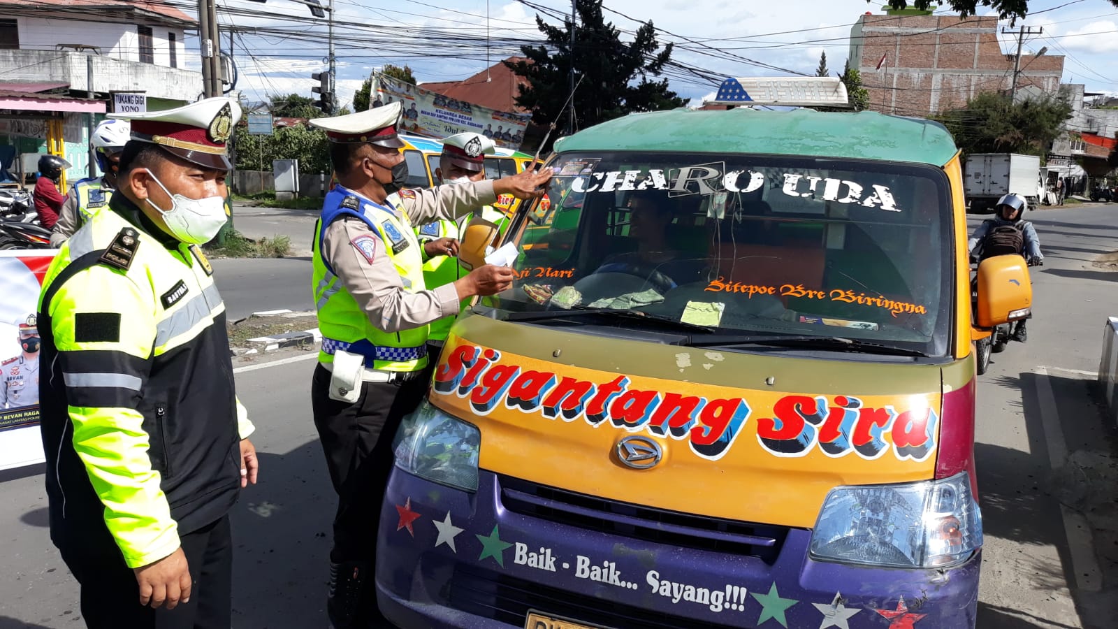 Satgas Preemtif Ops Patuh Toba 2022 dipimpin langsung Kanit Turjawali, Ipda Sastra Sembiring berkeliling ke sejumlah jalan di Kota Kabanjahe, diantaranya Simpang 3 Masjid Agung, Jalan Veteran – Jalan Mariam Ginting Kabanjahe.