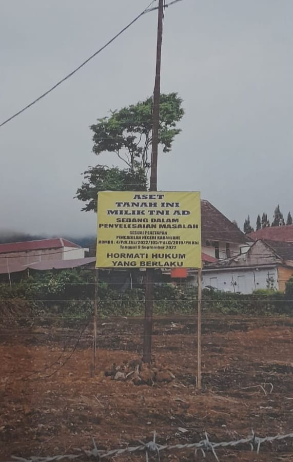 Berastagi, Karosatuklik.com – Sumber Alam Br Sinuraya, S.H, Warga Kabanjahe mengaku kaget dan heran di lokasi sebidang lahan miliknya seluas lebih kurang 3.700 m2, telah dipasang plank oleh orang tidak dikenal (OTK) yang bertuliskan “Aset Tanah Ini Milik TNI AD, Sedang Dalam Penyelesaian Masalah, Sesuai Penetapan Pengadilan Negeri Kabanjahe, Nomor: 4/Pdt.Eks/2022/105/Pdt./2019/PN.Kbj, Tanggal 9 September 2022. Hormati Hukum Yang Berlaku”.