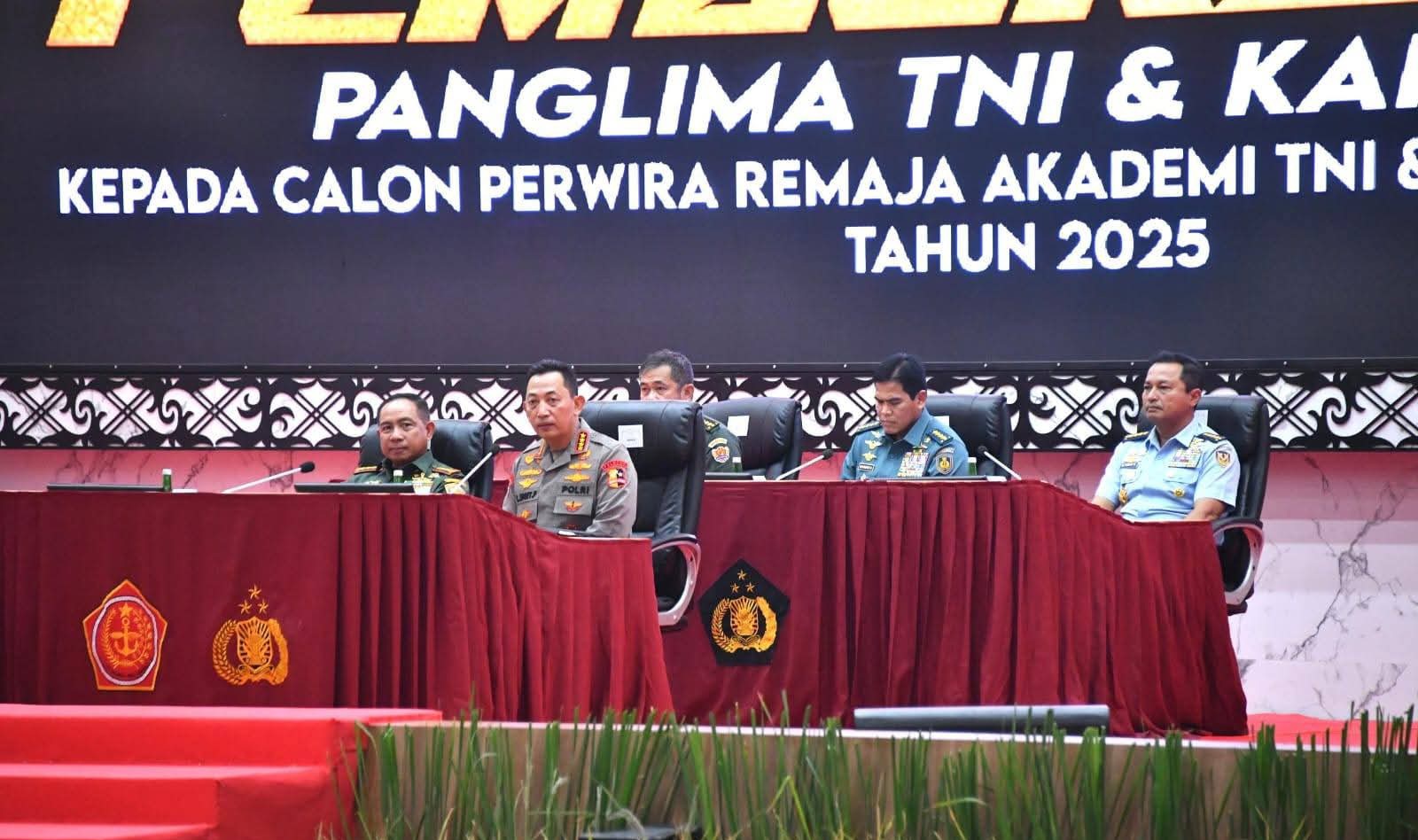 Jakarta, Karosatuklik.com – Panglima TNI Jenderal TNI Agus Subiyanto bersama Kapolri Jenderal Pol Listyo Sigit Prabowo memberikan pembekalan kepada 2.000 Calon Perwira Remaja (Capaja) TNI-Polri Tahun 2025, di Gedung Olahraga (GOR) A. Yani, Mabes TNI, Cilangkap, Jakarta Timur, Jumat (18/7/2025).