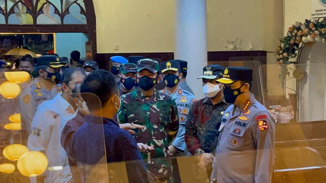 Tiba di Lanud Hassanudin pada Minggu pukul 19.53 Wita, Panglima TNI dan Kapolri langsung bergegas menuju lokasi TKP Gereja Katedral Makassar yang sedang digelar olah TKP, seperti dilansir Karosatuklik.com dari Pupen TNI.