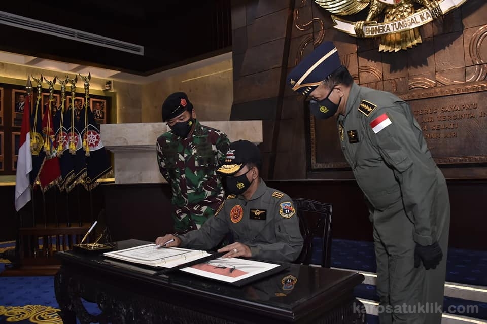 Turut hadir pada acara tersebut diantaranya Wakasau Marsdya TNI Fahru Zaini Isnanto, S.H., M.DS., Irjen TNI Letjen TNI (Mar) Bambang Suswantono, S.H., M.H., M.Tr.(Han), Asops Panglima TNI Mayjen TNI Tiopan Aritonang, Aspers Panglima TNI Marsda TNI Diyah Yudanardi dan Kapuspen TNI Mayjen TNI Achmad Riad, S.I.P. (R1)