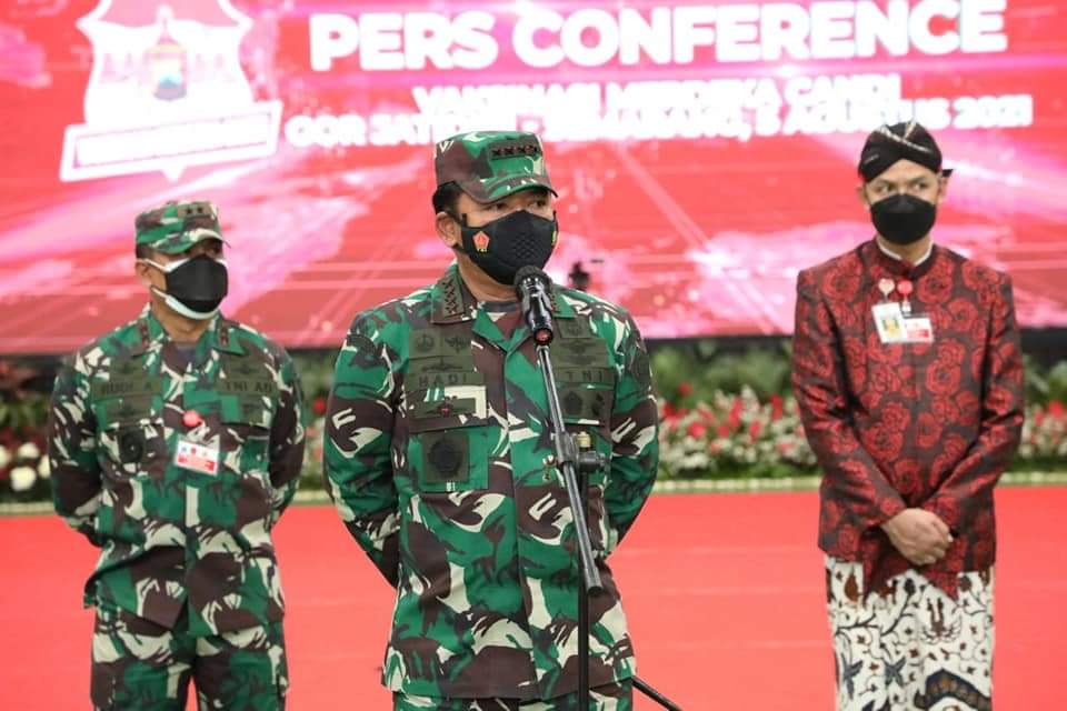 Hal tersebut disampaikan Panglima TNI Marsekal TNI Hadi Tjahjanto, S.I.P., didampingi Kapolri Jenderal Pol Drs. Listyo Sigit Prabowo, M.Si., saat meninjau Serbuan Vaksinasi di GOR Jatidiri Semarang, Kamis (5/8/2021).