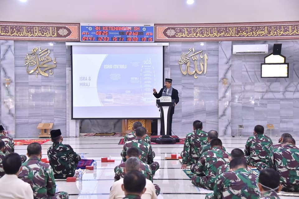 Demikian disampaikan Kepala Staf Umum (Kasum) TNI Letjen TNI Ganip Warsito, S.E., M.M. membacakan amanat Panglima TNI Marsekal TNI Hadi Tjahjanto, S.I.P. pada acara Pembinaan Rohani Islam dalam rangka memperingati Isra Miraj Nabi Muhammad SAW di Masjid Jenderal Sudirman Mabes TNI, Cilangkap, Jakarta Timur, Rabu (17/3/2021), seperti dilansir Karosatuklik.com dari Pusat Penerangan (Puspen) TNI.