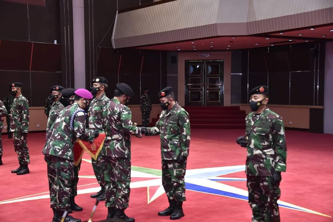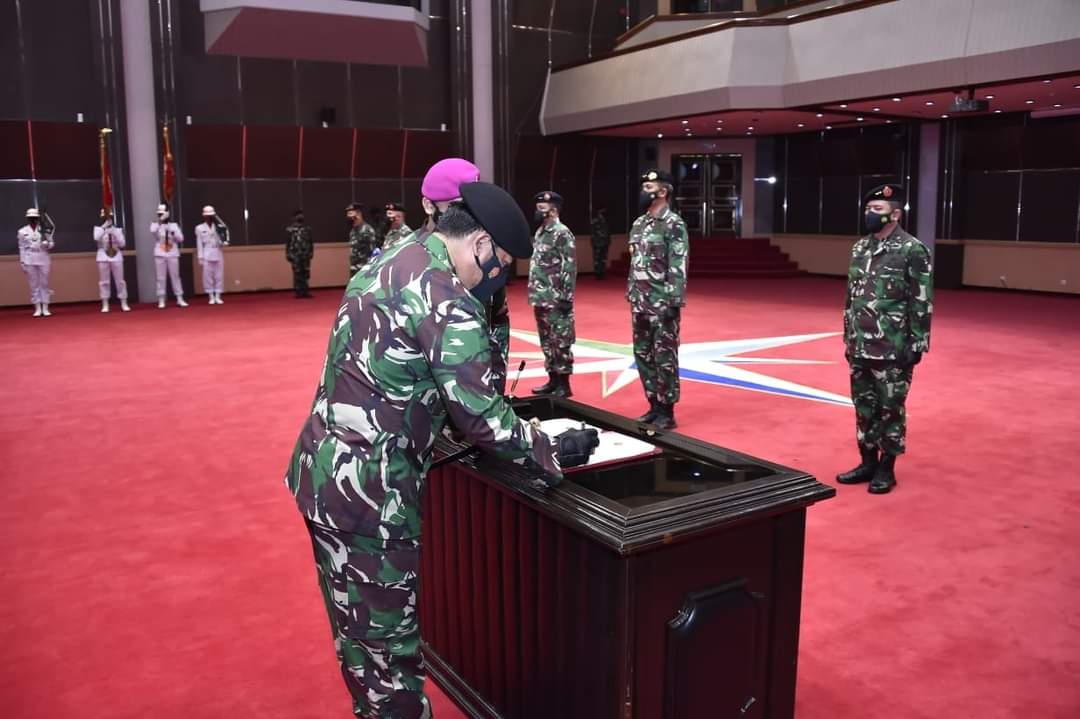 Jakarta, Karosatuklik.com – Panglima TNI Marsekal TNI Hadi Tjahjanto, S.I.P., memimpin upacara penyerahan jabatan Komandan Sekolah Komando (Dansesko) TNI dan Komandan Komando Pembinaan Doktrin, Pendidikan dan Latihan (Dankodiklat) TNI dilanjutkan Serah Terima Jabatan (Sertijab) Asisten Operasi (Asops) Panglima TNI, Asisten Komunikasi dan Elektronik (Askomlek) Panglima TNI, Kepala Pusat Penerangan (Kapuspen) TNI, dan Kepala Pusat Sejarah (Kapusjarah) TNI, bertempat di Mabes TNI Cilangkap, Jakarta Timur, Jumat (30/4/2021).