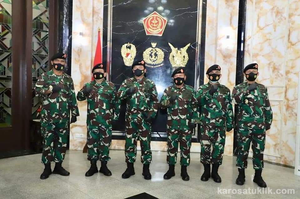 Jakarta, Karosatuklik.com – Panglima TNI Marsekal TNI Hadi Tjahjanto, S.I.P, memimpin upacara penyerahan jabatan Kepala Staf Umum (Kasum) TNI serta Serah Terima Jabatan (Sertijab) Asrenum Panglima TNI dan Aslog Panglima TNI, bertempat di Subden Denma Mabes TNI, Jalan Merdeka Barat, Jakarta Pusat, Rabu (30/12/2020).