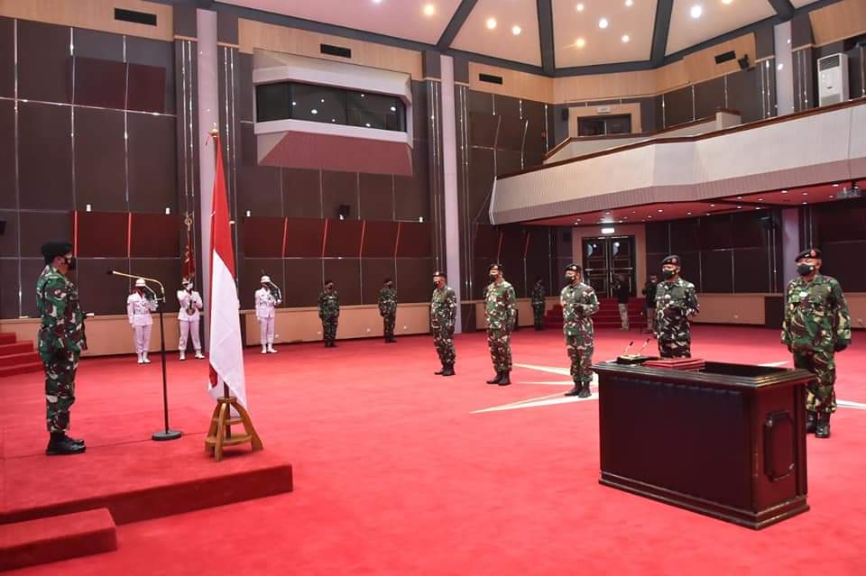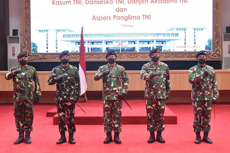 Jakarta, Karosatuklik.com – Panglima TNI Marsekal TNI Hadi Tjahjanto, S.I.P., memimpin upacara sertijab Kepala Staf Umum (Kasum) TNI dari Letjen TNI Ganip Warsito, S.E., M.M. kepada Letjen TNI Eko Margiyono, M.A. dan Asisten Personel (Aspers) Panglima TNI dari Marsda TNI Diyah Yudanardi kepada Marsda TNI A. Gustaf Brugman, M.Si. (Han), bertempat di Mabes TNI Cilangkap, Jakarta Timur, Rabu (9/6/2021).
