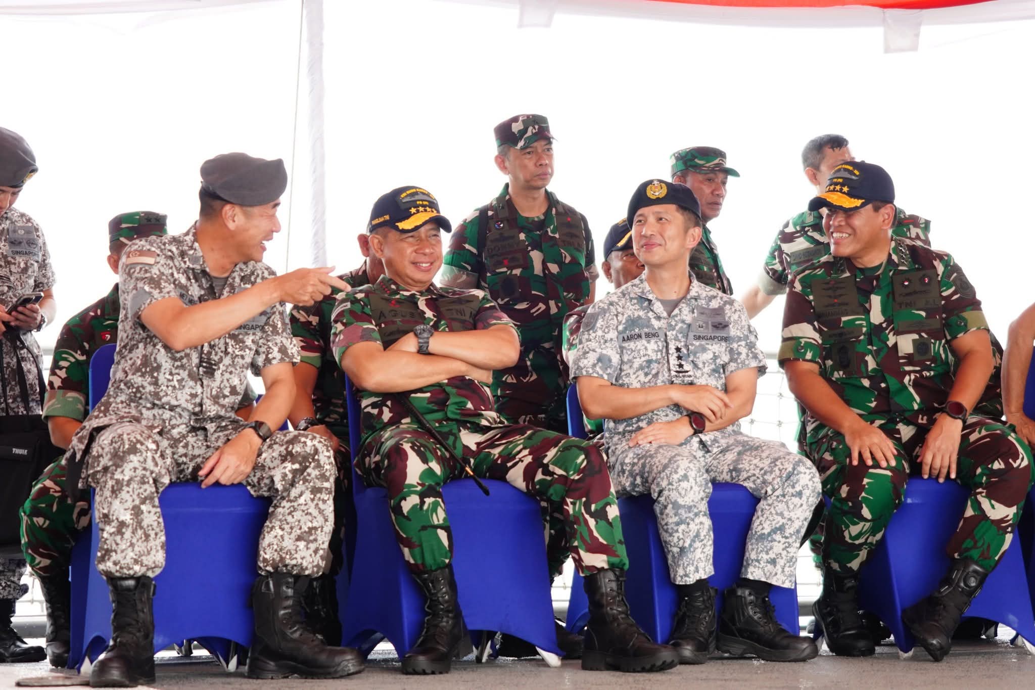 Aksi memukau para pasukan khusus kedua negara ini ditinjau langsung Panglima TNI Jenderal TNI Agus Subiyanto bersama Chief Of Defence Force (CDF) Singapura Vice Admiral Aaron Beng di perairan Batam, Rabu (4/6/2025).