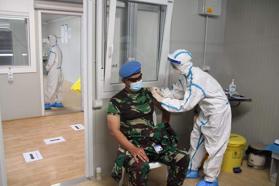 Lebanon, Karosatuklik.com -Pasukan Perdamaian Indonesia yang tergabung dalam Satgas Kontingen Garuda (Konga) UNIFIL menerima vaksinasi COVID-19 tahap pertama. Sabtu (8/5/2021).