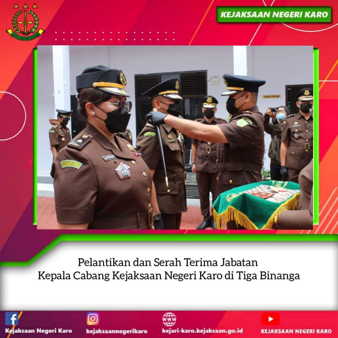 Pelantikan dan Serah Terima Jabatan Eselon IV Kepala Cabang Kejaksaan Negeri Karo yang dipimpin langsung oleh Kepala Kejaksaan Negeri Karo Bapak Fajar Syah Putra, SH., MH,. dari Ibu Uli Artha Sitanggang , S.H., M.H. kepada Bapak Ferdinan Sebayang, SH.MH