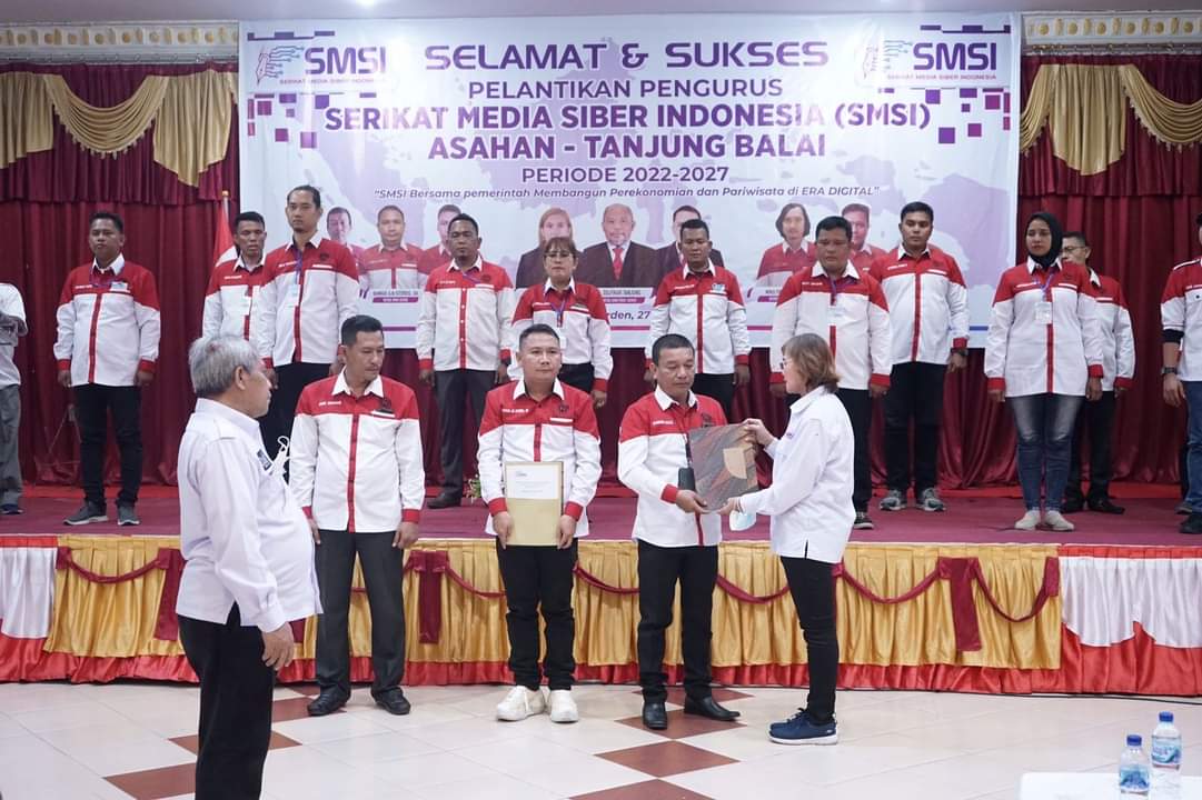 Kisaran, Karosatuklik.com – Ketua Serikat Media Siber Indonesia (SMSI) Provinsi Sumatera Utara Ir. Zulfikar Tanjung melantik penguris SMSI Asahan-Tanjung Balai (Astab) periode 2022-2025 di Aula Hotel Sabty Garden Kisaran, Sabtu (27/08/2022).