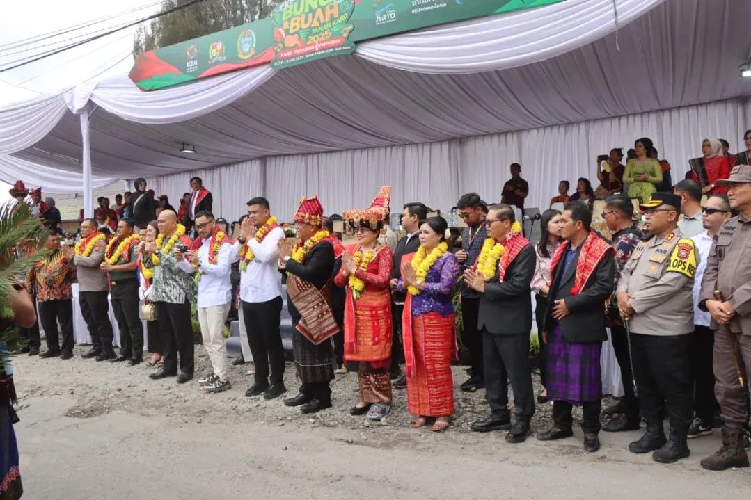 Kedatangan para tamu kehormatan ini disambut dengan hangat oleh Bupati Karo Antonius Ginting dan Wakil Bupati Komando Tarigan, yang tampak mengenakan pakaian adat Karo.Sementara Bobby dan Giring tampil serasi mengenakan kemeja putih dan beka buluh, kain khas Karo yang sarat makna budaya.