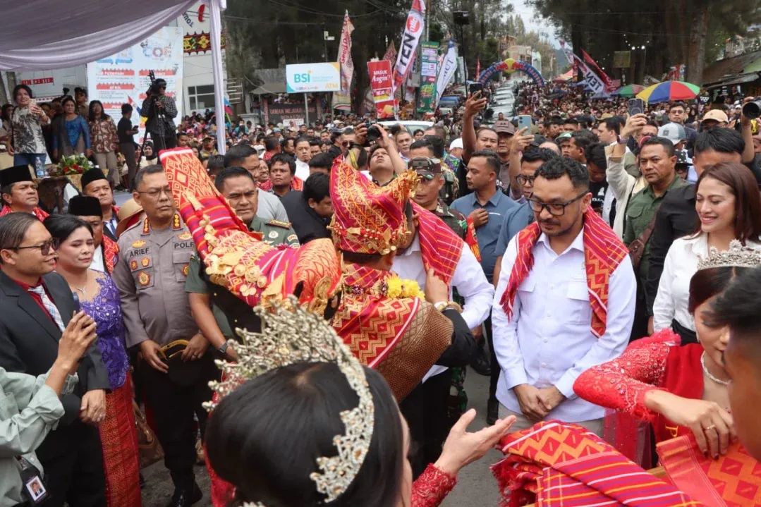 Kedatangan para tamu kehormatan ini disambut dengan hangat oleh Bupati Karo Antonius Ginting dan Wakil Bupati Komando Tarigan, yang tampak mengenakan pakaian adat Karo.Sementara Bobby dan Giring tampil serasi mengenakan kemeja putih dan beka buluh, kain khas Karo yang sarat makna budaya.