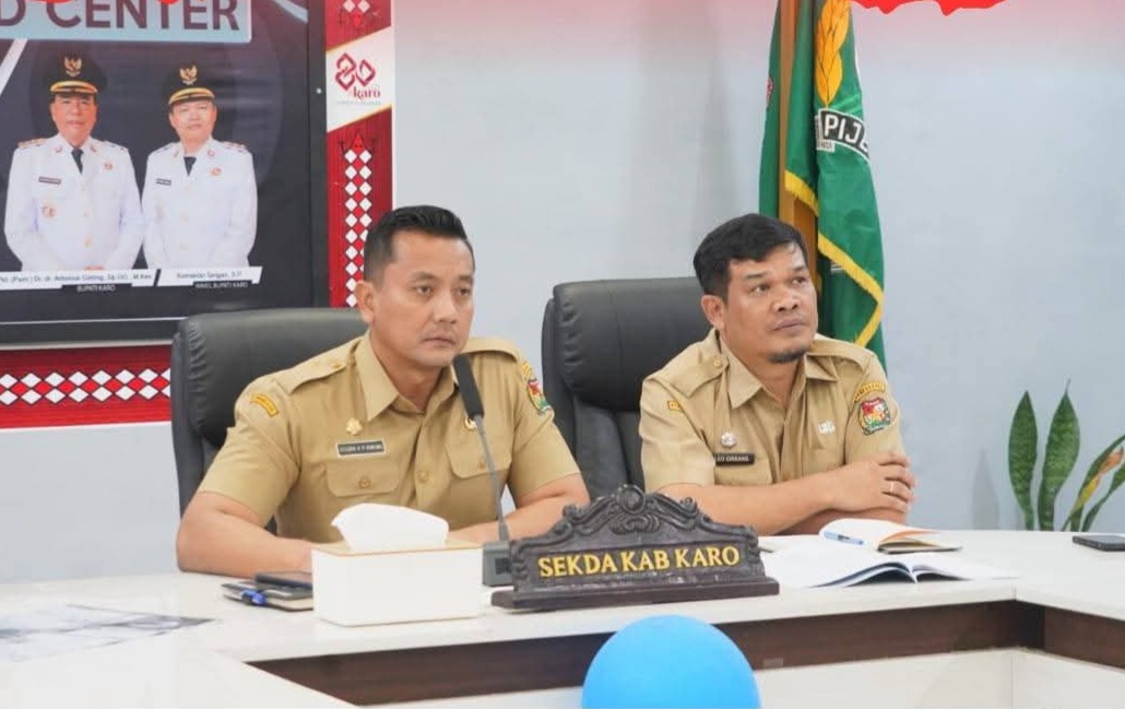 Kabanjahe, Karosatuklik.com – Bupati Karo, Brigjen Pol (Purn) Dr. dr. Antonius Ginting, Sp.OG, M.Kes yang diwakili Sekretaris Daerah (Sekda) Kabupaten Karo, Gelora Kurnia Putra Ginting, S.STP, MM, mengikuti Desk Reviu Usulan Sekolah Nasional Terintegrasi yang diselenggarakan Direktorat Jenderal Pendidikan Anak Usia Dini, Pendidikan Dasar dan Pendidikan Menengah secara daring melalui zoom meeting di ruang Karo Command Center (KCC) Kantor Bupati Karo, Kabanjahe, Selasa (10/03/2026).