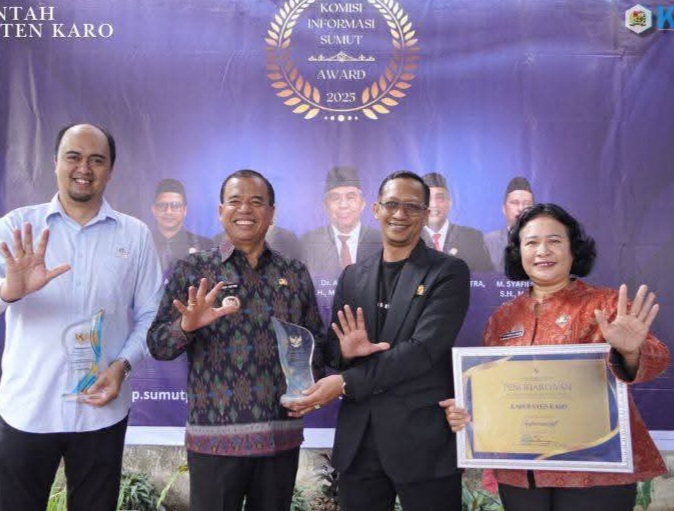 Medan, Karosatuklik.com – Pemerintah Kabupaten Karo kembali menorehkan prestasi membanggakan dengan meraih Anugerah Keterbukaan Informasi Badan Publik Tahun 2025 sebagai Badan Publik Informatif pada ajang Keterbukaani Informasi Publik Sumatera Utara Awards (KIA) Tahun 2025.