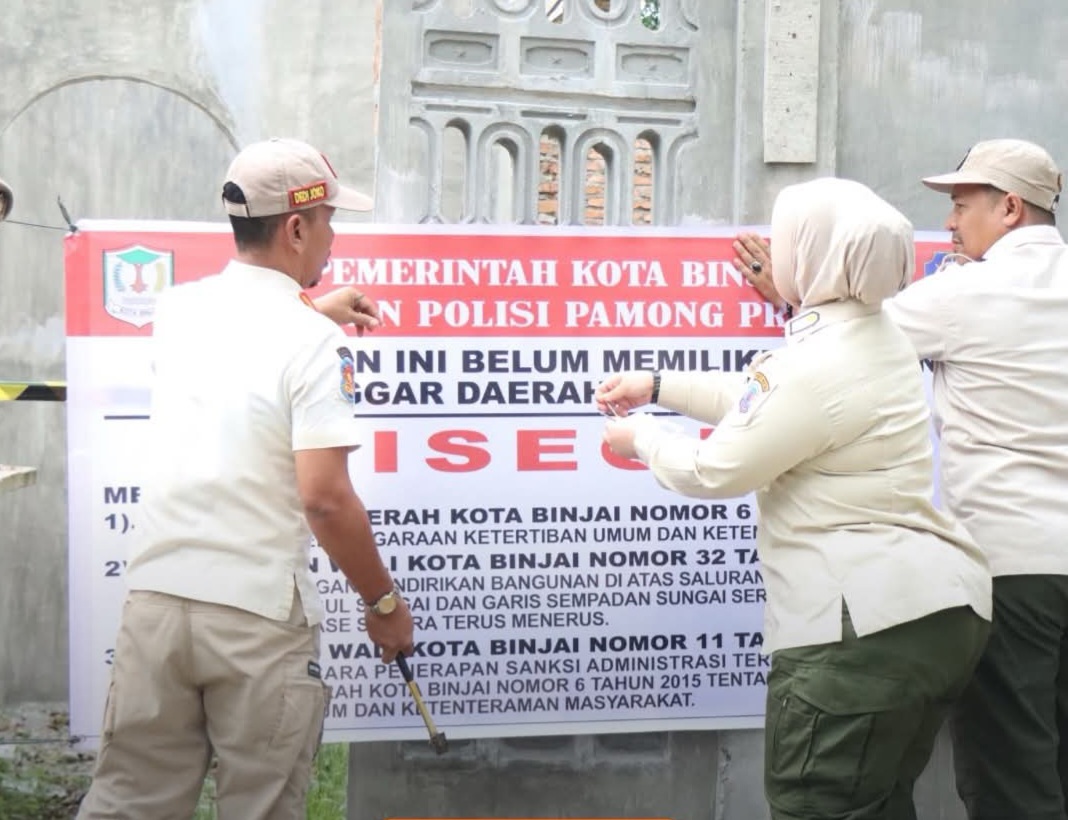 “Pemilik bangunan terbukti melanggar Peraturan Daerah Kota Binjai Nomor 6 Tahun 2015 tentang Ketertiban Umum serta Peraturan Wali Kota Binjai Nomor 32 Tahun 2011 yang secara tegas melarang pendirian bangunan di atas tanggul dan garis sempadan sungai,” tegasnya.
