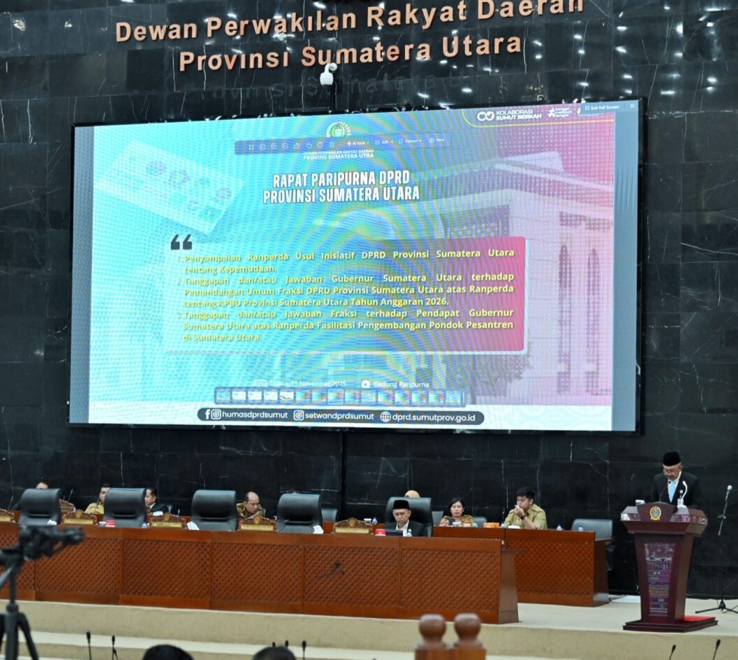 Tanggapan tersebut dibacakan oleh Penjabat (Pj) Sekretaris Daerah Provinsi (Sekdaprov) Sumut Sulaiman Harahap pada rapat paripurna di Gedung DPRD Sumut, Jalan Imam Bonjol, Medan, Selasa (11/11/2025).