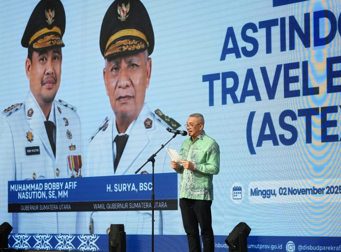 Hal itu disampaikannya dalam sambutan pada acara Jamuan Makan Tamu Astex 2025, yang digelar oleh DPD Asosiasi Travel Agent Indonesia (Astindo) Sumut di Aula Raja Inal Siregar, Kantor Gubernur Sumut, Jalan Diponegoro, Medan, Minggu (2/11/2025) malam.