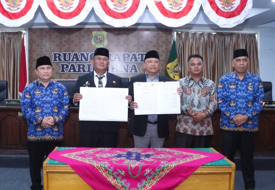 Dairi, Karosatuklik.com – Bupati Dairi Vickner Sinaga yang diwakili oleh Wakil Bupati Dairi Wahyu Daniel Sagala melakukan penandatanganan Nota Kesepakatan KUA PPAS APBD Tahun Anggaran 2026 bersama Ketua DPRD Dairi Sabam Sibarani dan Wakil Ketua DPRD Dairi Helvensius Tondang, dalam sidang paripurna DPRD yang digelar pada Senin (17/11/2025) di Gedung DPRD Dairi.