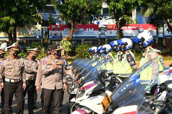Dalam apel ini, hadir Kabag Ops Korlantas Polri Kombes Pol Rudy Antariksawan dan Dirlantas Polda Metro Jaya Kombes Pol Sambodo Purnomo Yogo. (PWInews.id)