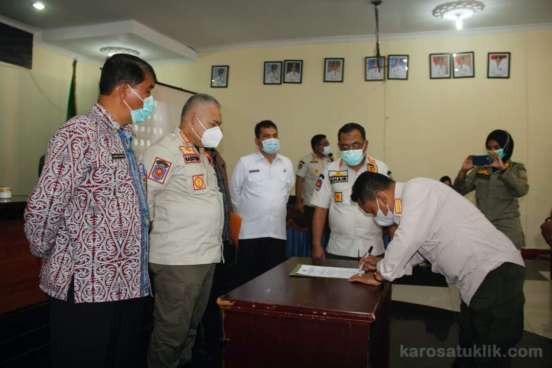 Acara yang dilaksanakan dengan penerapan protokol kesehatan secara ketat tersebut diakhiri dengan penandatangan nota kesepahaman bersama antara Satpol PP Sumut dengan Satpol PP Kabupaten/Kota yang hadir. (R1)