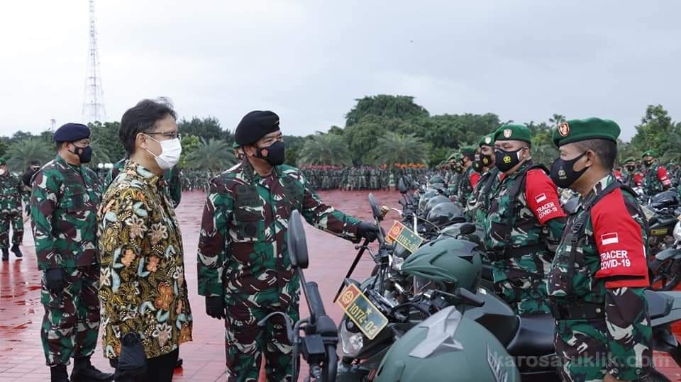 “Apel gelar kekuatan bagi tenaga vaksinator maupun tracer TNI yang kita lanjutkan dengan pelatihan atau Training Of Trainer (TOT) diikuti seluruh anggota Bintara Pembina Desa (Babinsa), Bintara Pembina Potensi Maritim (Babinpotmar) dan Bintara Pembina Potensi Dirgantara (Babinpotdirga),” ujar Panglima TNI.