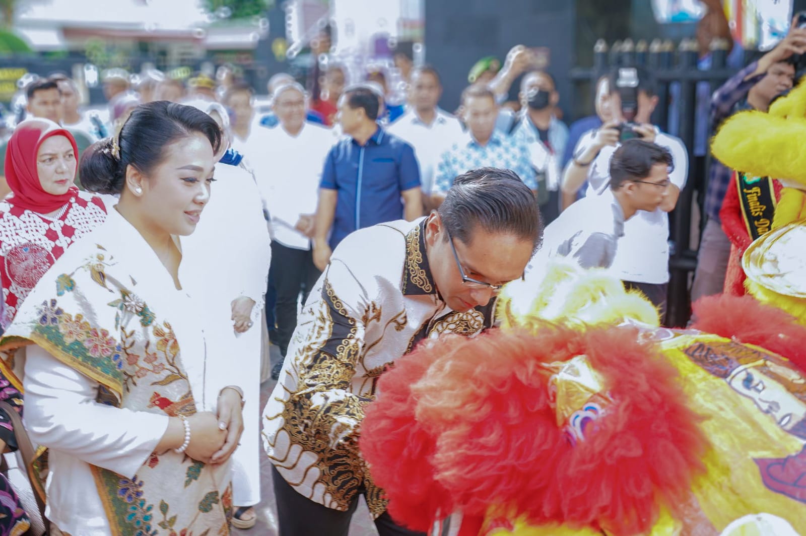 Medan, Karosatuklik.com – Wali Kota Medan Rico Tri Putra Bayu Waas didampingi Ketua TP PKK Airin Rico Waas menghadiri Perayaan Waisak 2025 di Lapangan Benteng, Medan, Minggu (18/5/2025). Kedatangan orang nomor satu Pemko Medan ini disambut sukacita oleh umat Buddha dan atraksi Barongsai.