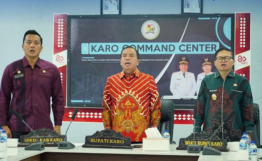 Kegiatan tersebut diikuti secara daring melalui zoom meeting dari Ruang Karo Command Center (KCC) Kantor Bupati Karo, Kabanjahe, Kamis (2/4/2026).