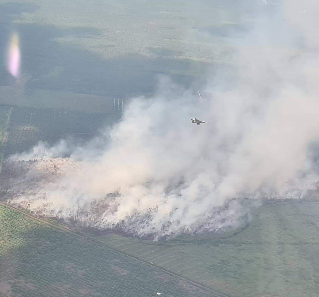 Pekanbaru, Karosatuklik.com – Dua pesawat tempur TNI AU jenis F-16 Skadud 16 Lanud Roesmin Nurjadin (Rsn) Pekanbaru, yang sedang latihan profisiensi, ikut membantu memantau Karhutla (Kebakaran Hutan dan Lahan) dari udara di provinsi Riau, Selasa (9/3/2021).