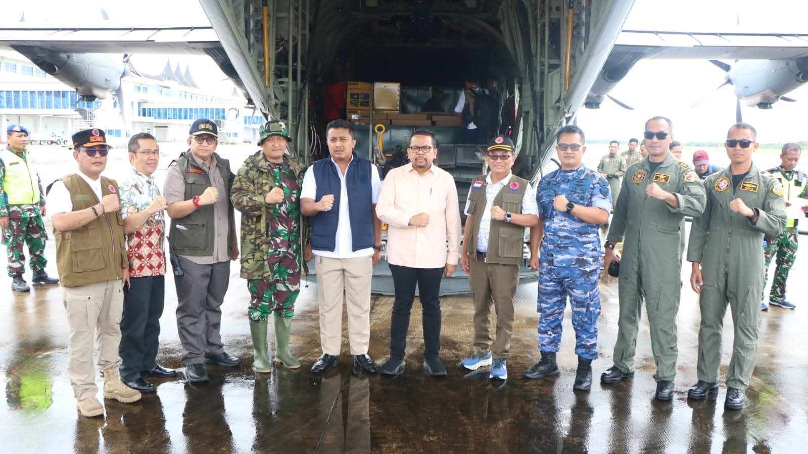 C-130 Hercules bernomor registrasi A-1318 tiba di Lanud Sultan Iskandar Muda, Aceh, sementara C-130J Super Hercules A-1339 mendarat di Bandara Internasional Minangkabau, Padang.