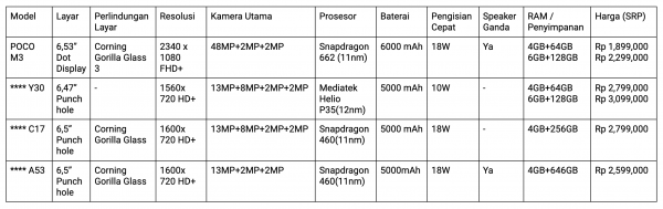 Nah, berikut harga dan perbandingan POCO M3 dengan Vivo Y30, Realme C17, dan OPPO A53. (sindonews.com)
