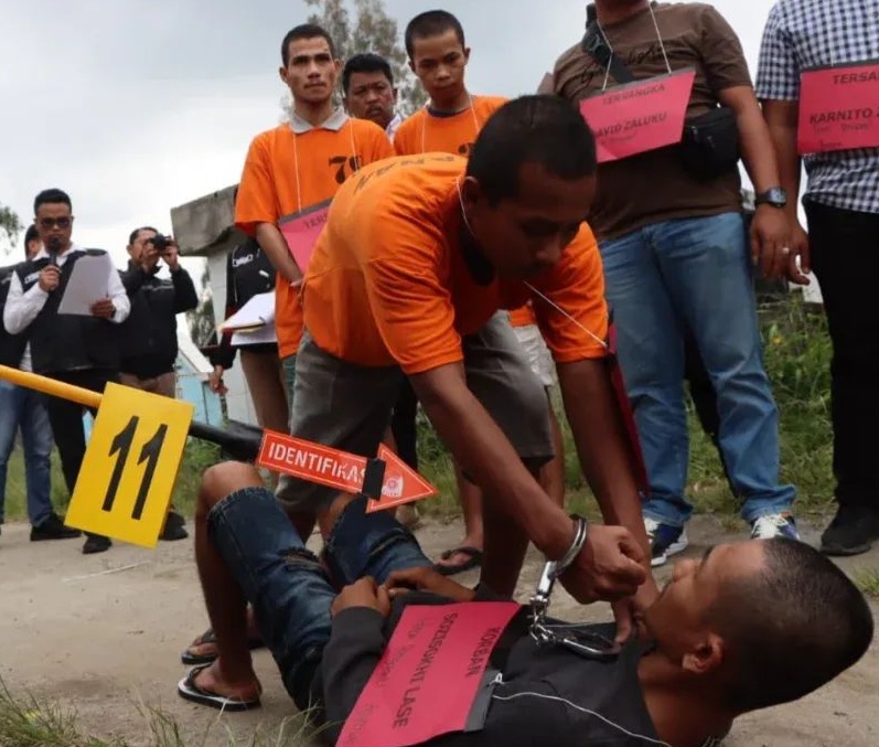 Rekonstruksi tersebut memperagakan sebanyak 27 adegan, yang diperankan langsung oleh 4 orang tersangka serta 5 pemeran pengganti.
