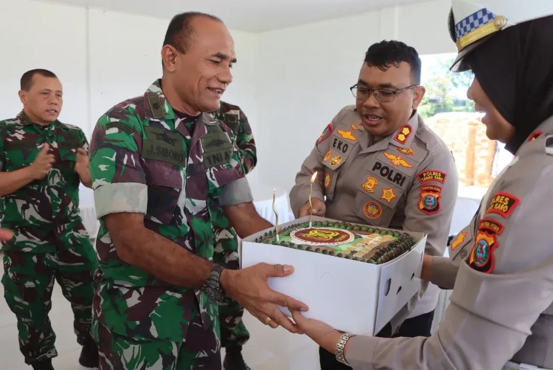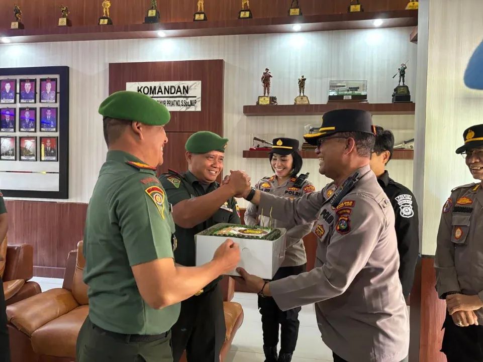 “Kami datang membawa kue ulang tahun sebagai simbol persaudaraan dan kebersamaan antara Polri dan TNI. Kami mohon maaf karena baru sempat memberikan kejutan hari ini, mengingat padatnya agenda kegiatan Polres beberapa hari terakhir,” ujarnya.