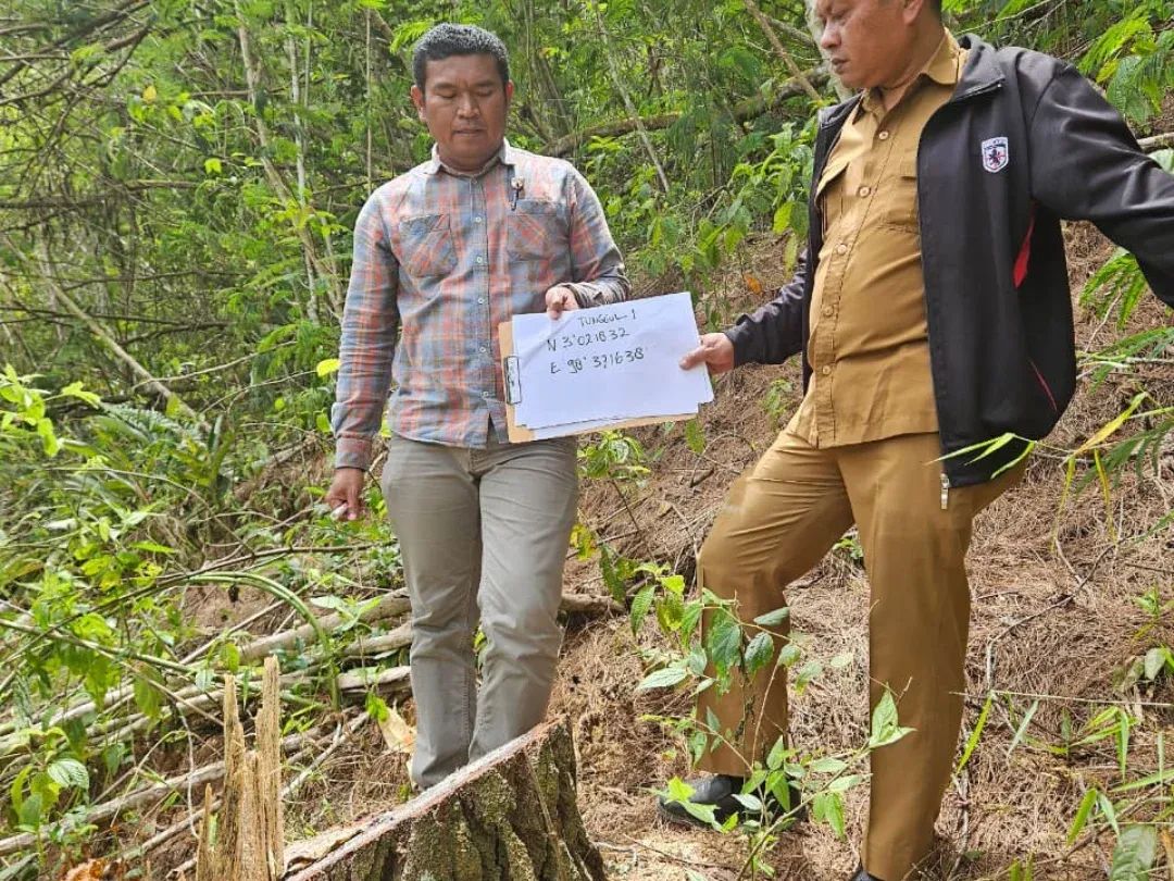 Tim gabungan melakukan peninjauan di lokasi yang disebut sebagai perladangan Paya Belinun, Desa Pernantin, Kecamatan Juhar, Kabupaten Karo. Dalam kegiatan tersebut, petugas mengambil titik koordinat lokasi penebangan kayu untuk memastikan status kawasan berdasarkan peta kehutanan.