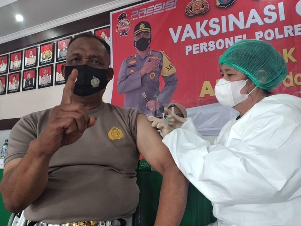 Pantauan, Waka Polres Tanah Karo Kompol Aron T Siahaan, SH adalah orang pertama penerima vaksin, selanjutnya para PJU Polres Tanah Karo, disusul Kapolsek/Ta diteruskan ke seluruh anggota Polres dan jajarannya dengan tetap melaksanakan Protokol Kesehatan.