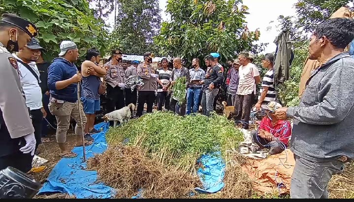 “Adapun banyak pohon ganja yang diamankan di perladangan Melas ini sebanyak 246 pohon ganja, 1 bungkus narkotika jenis ganja dengan berat bruto 400 gram didalam 1 buah goni warna putih,” lanjutnya.