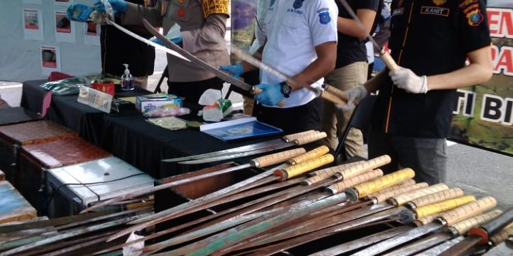 Dari penggrebekan yang dibantu oleh TNI dan Muspika Kecamatan Kutalimbaru itu, petugas berhasil menyita barang bukti, 73 mesin judi jackpot, 51 senjata tajam, 1 unit televisi, dadu putar, sabu-sabu sebanyak 4,83 gram, sabu-sabu sebanyak 0,3 gram, ganja sebanyak 14,71 gram dan 4 timbangan elektrik.