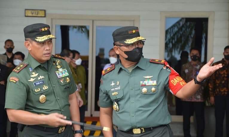 Mimika, Karosatuklik.com – Danrem 174/ATW Merauke Brigjen TNI E Reza Pahlevi selaku Komandan Satuan Tugas Pengamanan Wilayah (Dansatgas Pamwik) beserta Forkopimda Kabupaten Mimika menyambut Kedatangan Presiden RI Ir. H. Joko Widodo didampingi Ibu Negara Hj. Iriana Joko Widodo beserta rombongan di Bandara Moses Kilangin Kabupaten Mimika Papua.
