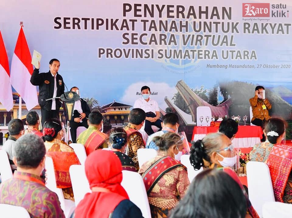“Hari ini telah diserahkan kurang lebih 20 ribu sertifikat untuk Provinsi Sumatra Utara. Khusus untuk Humbang Hasundutan ada penyerahan sertifikat yang berada di lokasi food estate, di lokasi lumbung pangan, itu ada 87 sertifikat,” ujar Presiden.