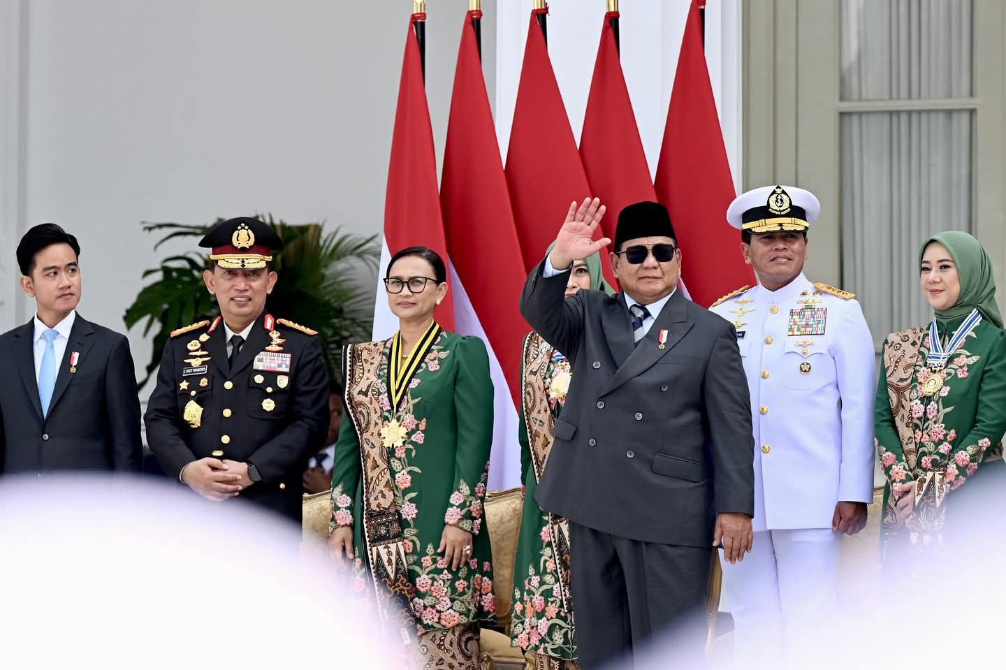 Turut hadir dalam upacara tersebut adalah Wakil Presiden Gibran Rakabuming, Ketua MPR Ahmad Muzani, Ketua DPR Puan Maharani, Ketua DPD Sultan Bachtiar Najamudin, para menteri kabinet Merah Putih, Panglima TNI Jenderal Agus Subiyanto, Kapolri Jenderal Polisi Listyo Sigit Prabowo, Kepala Staf Angkatan Darat (KSAD) Jenderal TNI Maruli Simanjuntak, Kepala Staf Angkatan Laut (KSAL) Laksamana Muhammad Ali, dan Kepala Staf Angkatan Udara (KSAU) Marsekal TNI Tonny Harjono. (R1/BPMI Setpres)