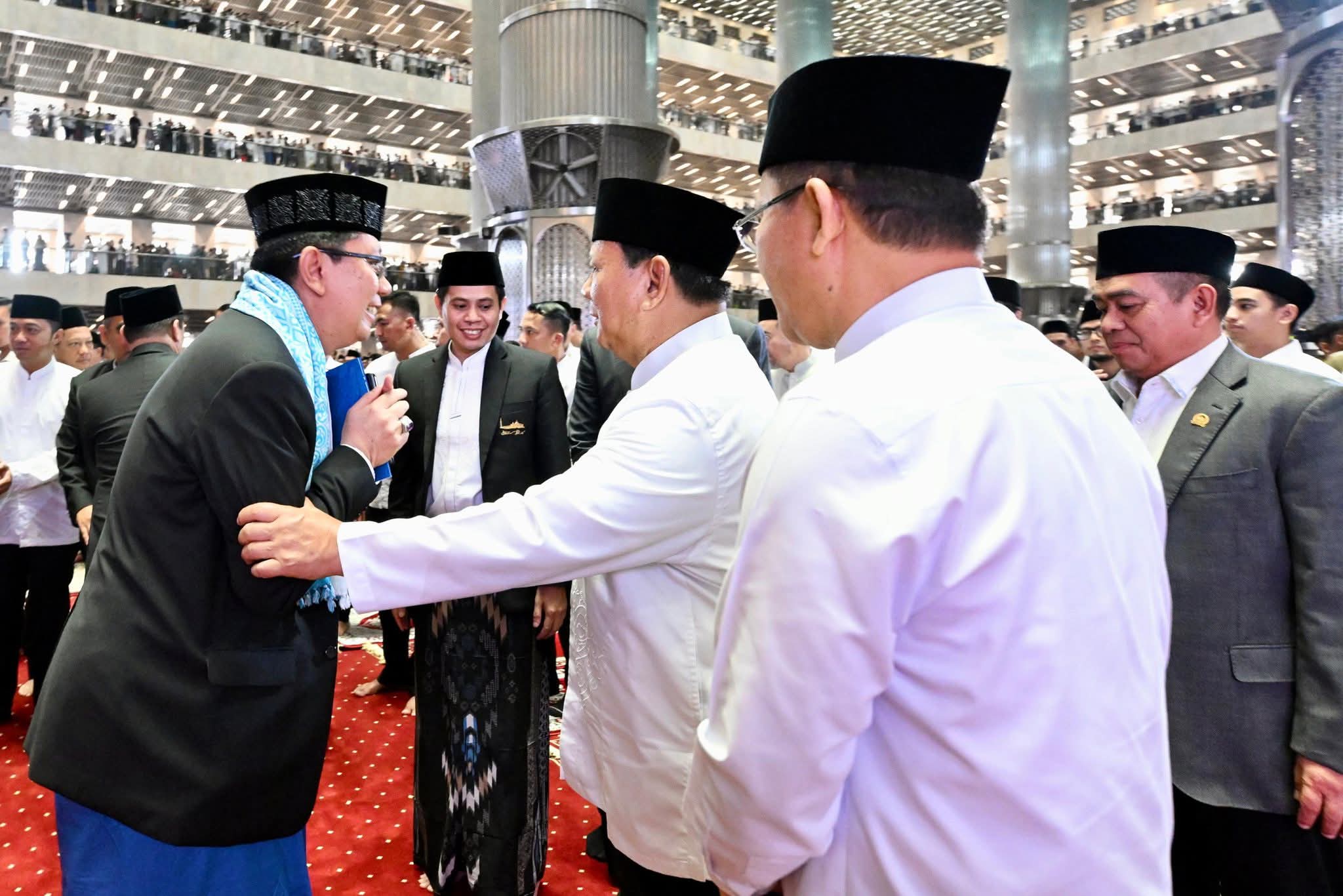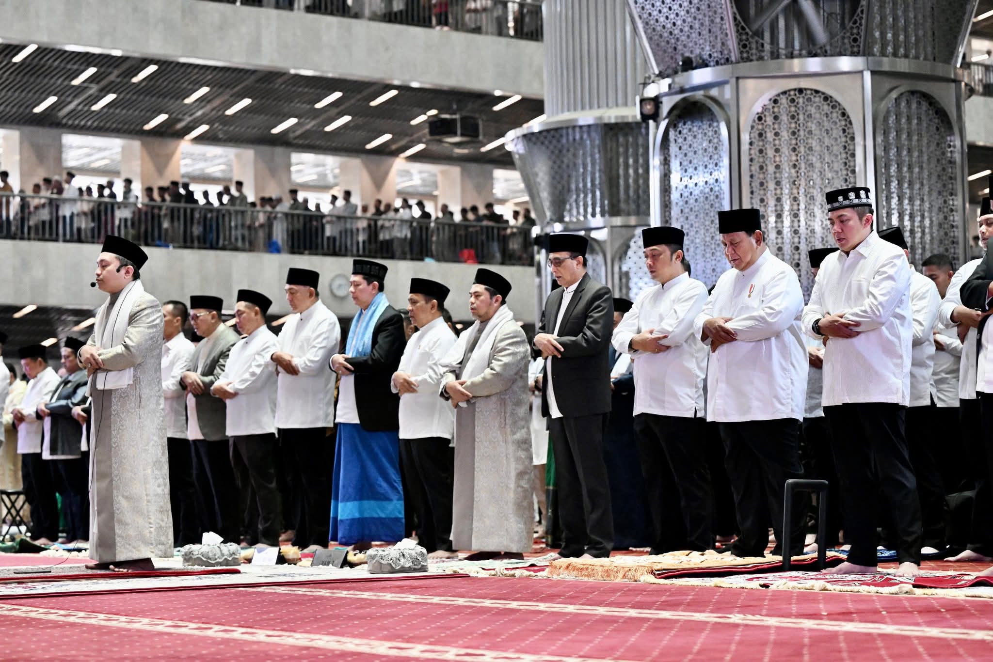 Suasana khidmat menyelimuti Masjid Istiqlal yang dipenuhi ribuan jamaah. Presiden Prabowo tampak khusyuk mengikuti seluruh rangkaian ibadah.