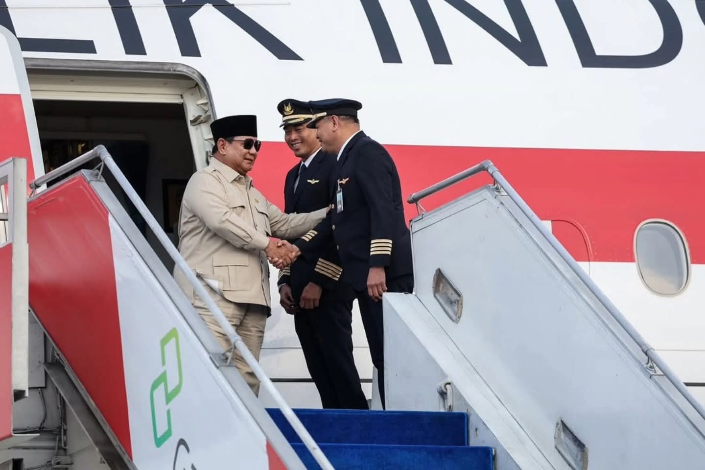 Pesawat Garuda Indonesia-1 yang ditumpangi Presiden Prabowo mendarat di Baseops Halim Perdanakusuma, Jakarta pukul 15.35 WIB.