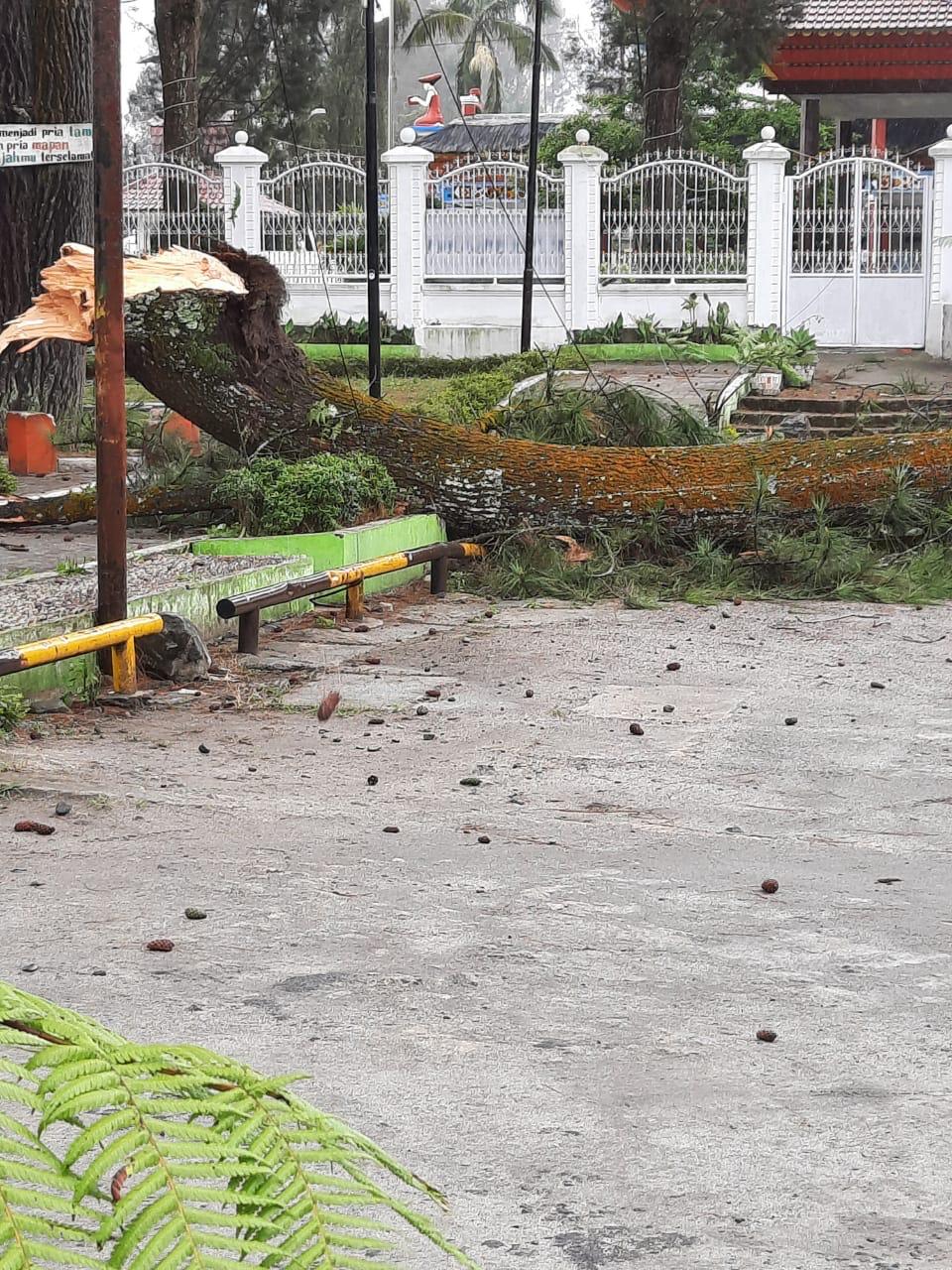 Korban jiwa tidak ada, kerugian material sesuai pendataan akibat tertimpa pohon, ada 4 (empat) rumah mengalami rusak yang terdiri dari 2 rumah masyrakat dan 2 hotel penginapan, ditambah satu unit kijang mobil dengan kerugian ditaksir ratusan juta.