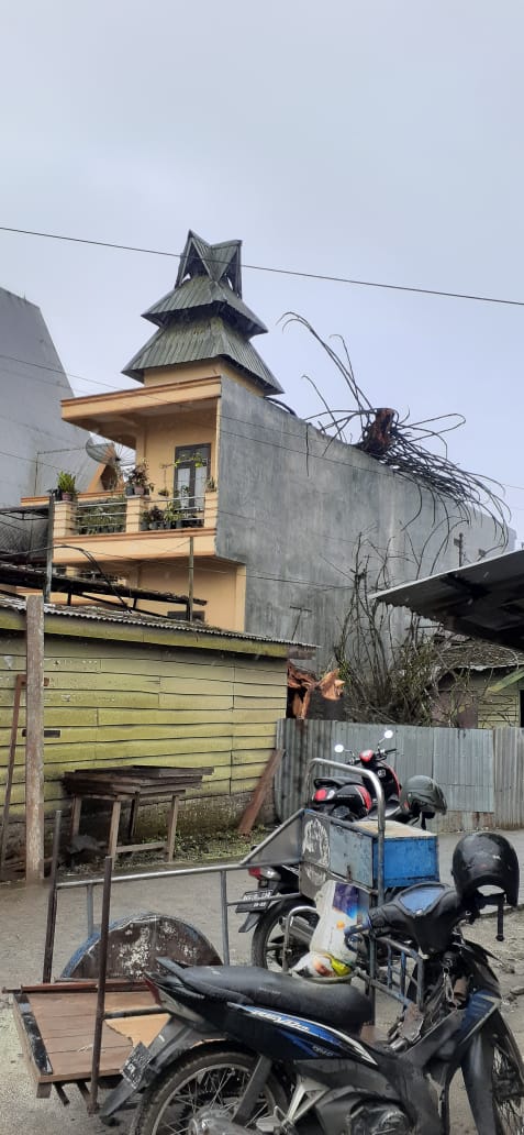Demikian juga seputaran Kecamatan Naman Teran, angin kencang mengakibatkan sejumlah atap seng rumah penduduk berterbangan termasuk sapo di perladangan warga banyak yang rusak.