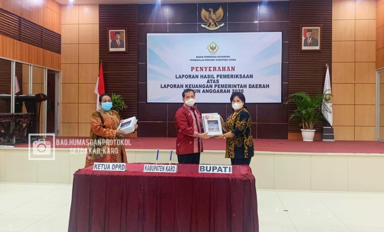 Dalam penyerahan Hasil Pemeriksaan atas Laporan Keuangan Pemerintah Daerah (LKPD) Tahun Anggaran 2020 ini, Pemerintah Kabupaten Karo kembali mendapat penghargaan Opini Wajar Tanpa Pengecualian (WTP) untuk kedua kalinya berturut turut.