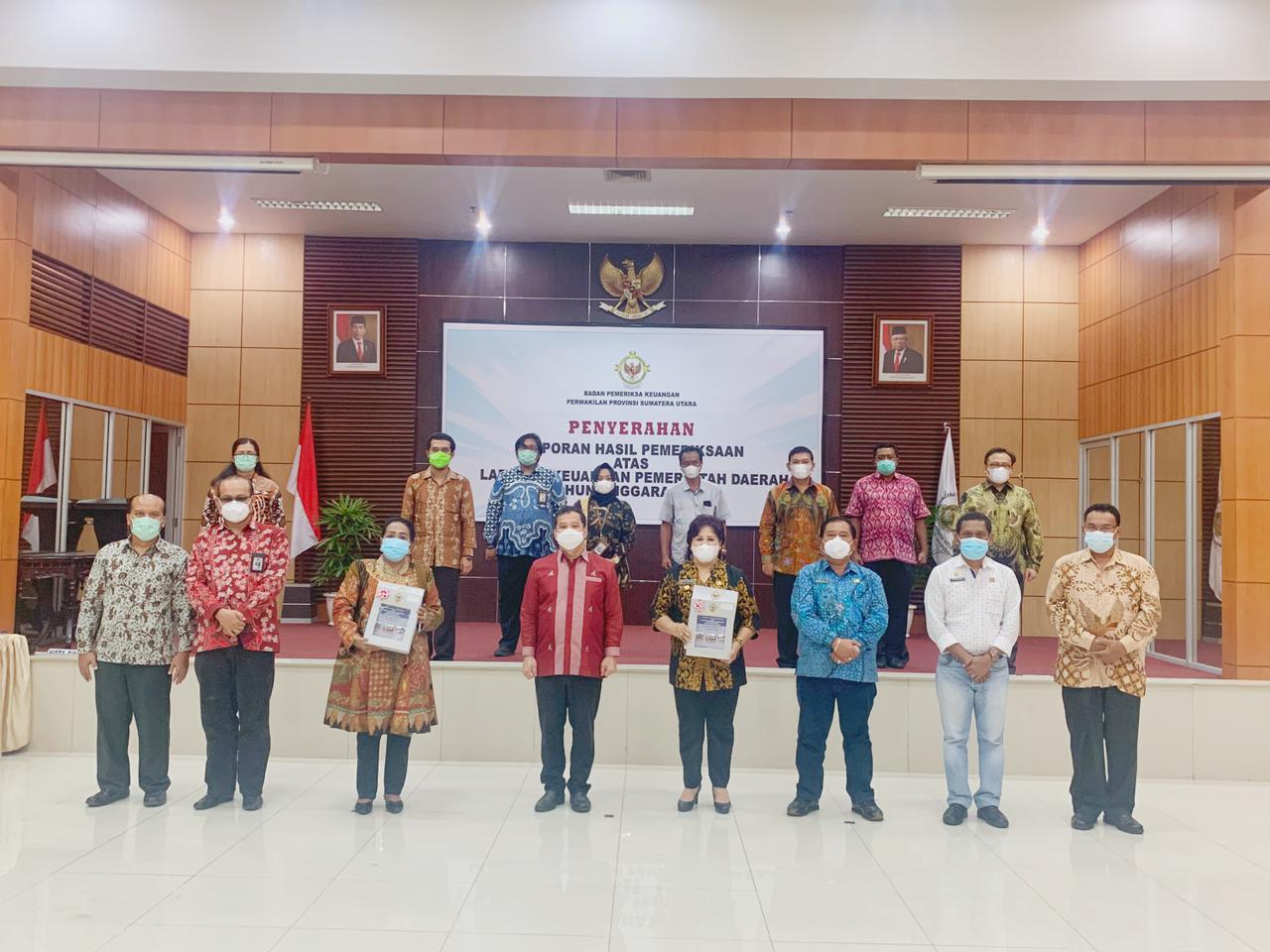 Medan, Karosatuklik.com – Bupati Karo Cory Sriwaty Sebayang menerima Laporan Hasil Pemeriksaan atas Laporan Keuangan Pemerintah Daerah (LKPD) Tahun Anggaran 2020 di Kantor Badan Pemeriksa Keuangan Republik Indonesia Perwakilan Provinsi Sumatera Utara, Medan, Jumat (21/5/2021).