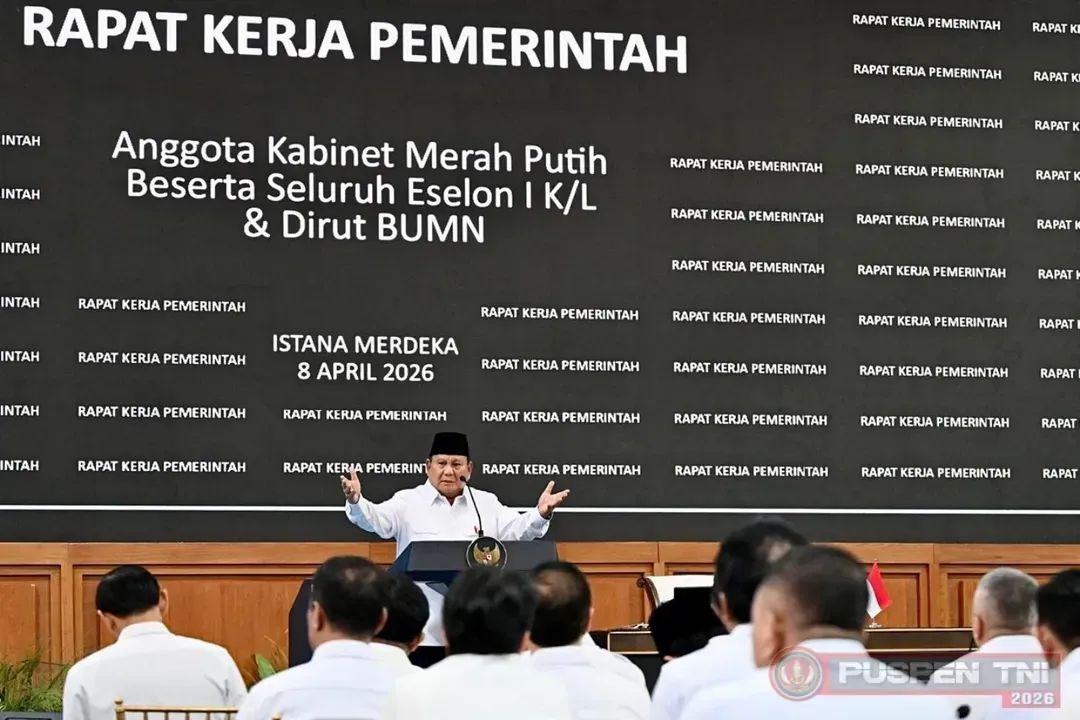 Jakarta, Karosatuklik.com – Presiden Prabowo Subianto menggelar Rapat Kerja Pemerintah bersama anggota Kabinet Merah Putih, seluruh pejabat Eselon I kementerian/lembaga, serta Direktur Utama BUMN di kompleks Istana Kepresidenan Jakarta, Rabu (8/4/2026).